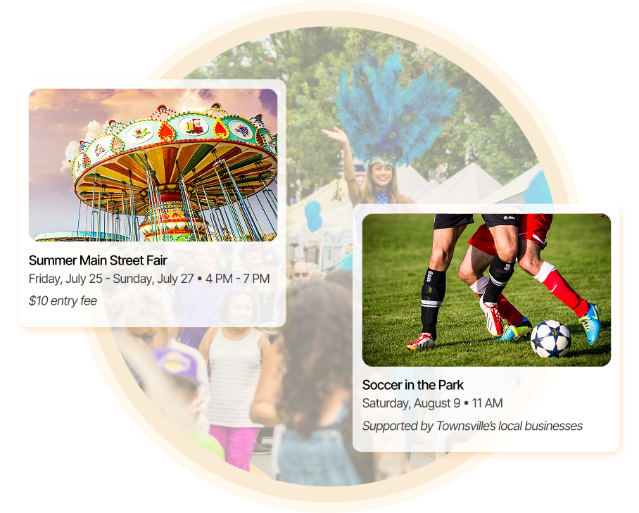 Let residents and visitors discover everything from movies in the park to farmers markets and library workshops, all on one platform.